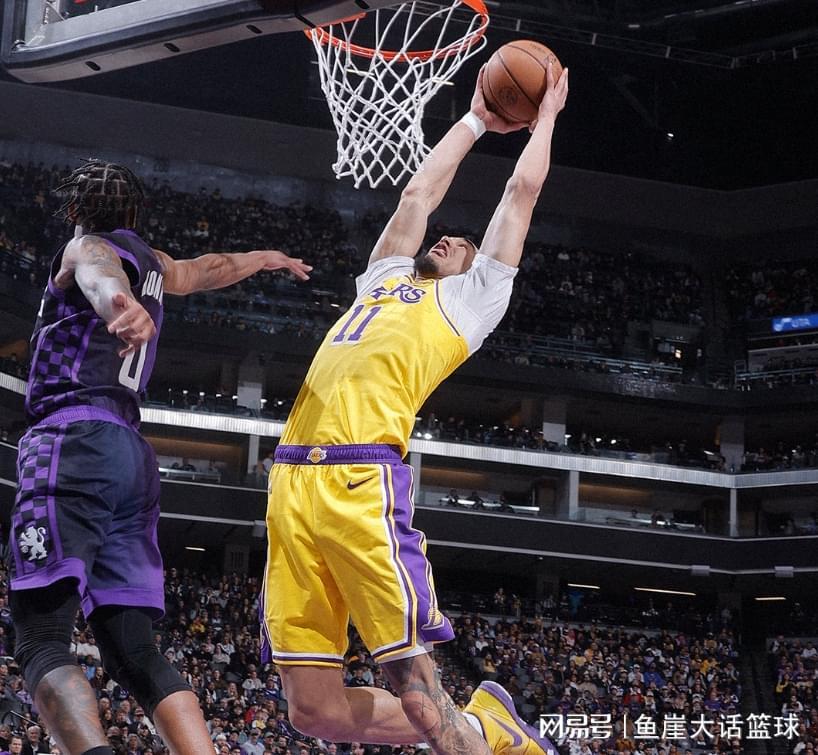 第一节比赛湖人打出一波8-2,威少中投命中后詹姆斯上篮得分,德罗赞投篮命中后艾顿罚球2中1,虽然之后的比赛雷诺、德罗赞能够得分,但是东契奇这里也持续得分回应,加上艾顿的发挥湖人领先到9分,威少、德罗赞追分时东契奇命中三分,随后国王打出一波16-4,关键时刻詹姆斯上篮得分,后面拉文罚球得分,第一节比赛结束国王领先4分。第二节比赛艾顿罚球2中1,蒙克命中三分后艾顿扣篮得分,蒙克继续命中三分后东契奇抛投得分,接下来国王打出一波10-4,东契奇罚球得分后国王又打出一波9-2,后续在东契奇、詹姆斯带领下湖人还是追分,最后时刻东契奇命中三分,三节比赛结束湖人落后7分。